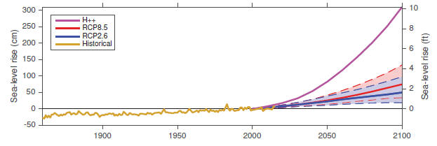 meter) level in 2100 relative to pre-industrial values: RCP 8.5, 6.0, 4.5 and